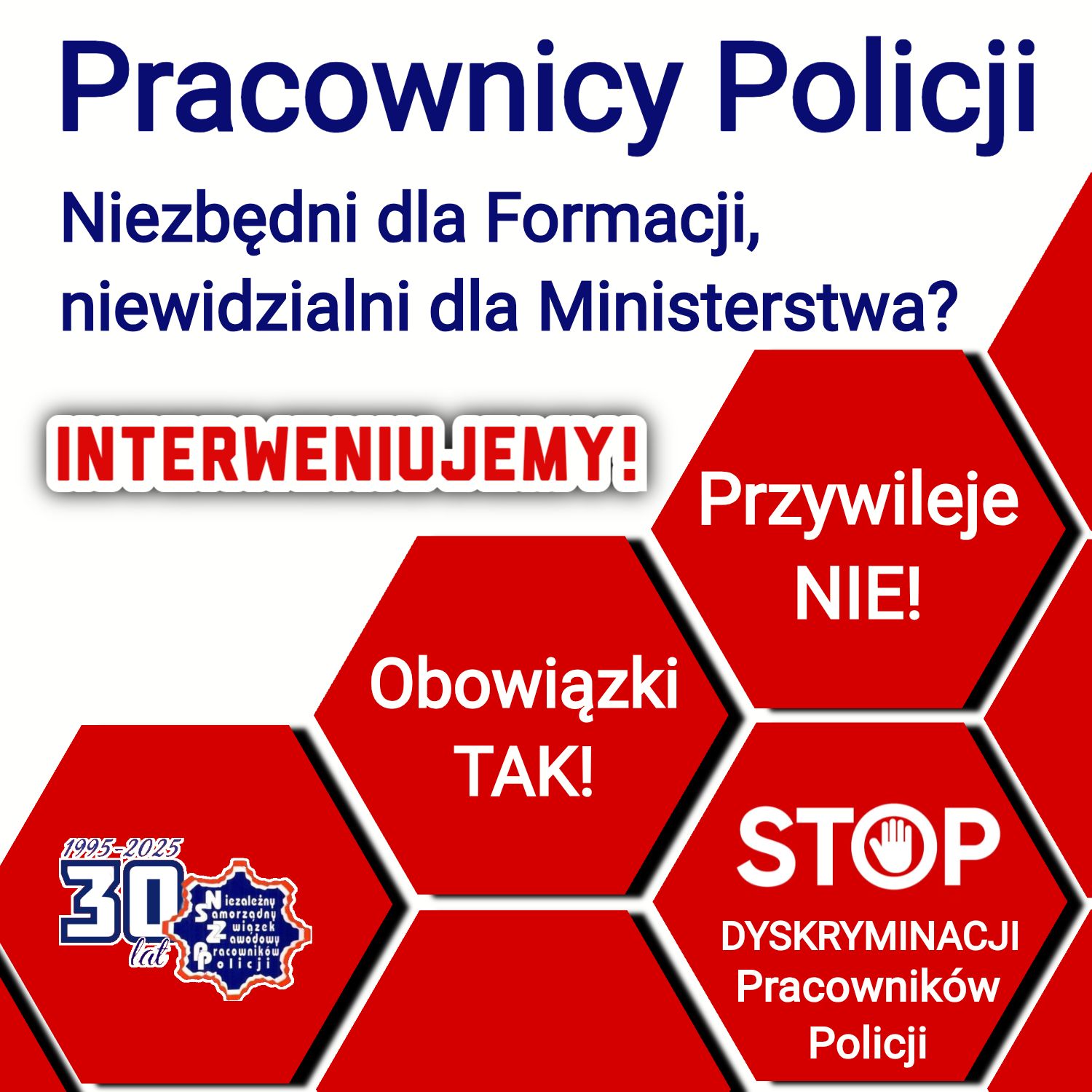 Niestety pomimo tych wszystkich działań, a także profesjonalizmu oraz oddania swojej pracy, pracownicy Policji są niewidoczni dla Ministerstwa Spraw Wewnętrznych i Administracji, które prowadzi jedynie pozorny dialog z stroną społeczną, nie realizuje wcześniej zapowiadanych obietnic. Jednocześnie stale pracuje nad przywilejami dla policjantów, co dodatkowo pogłębia poczucie dyskryminacji i nierównego traktowania pracowników Policji.