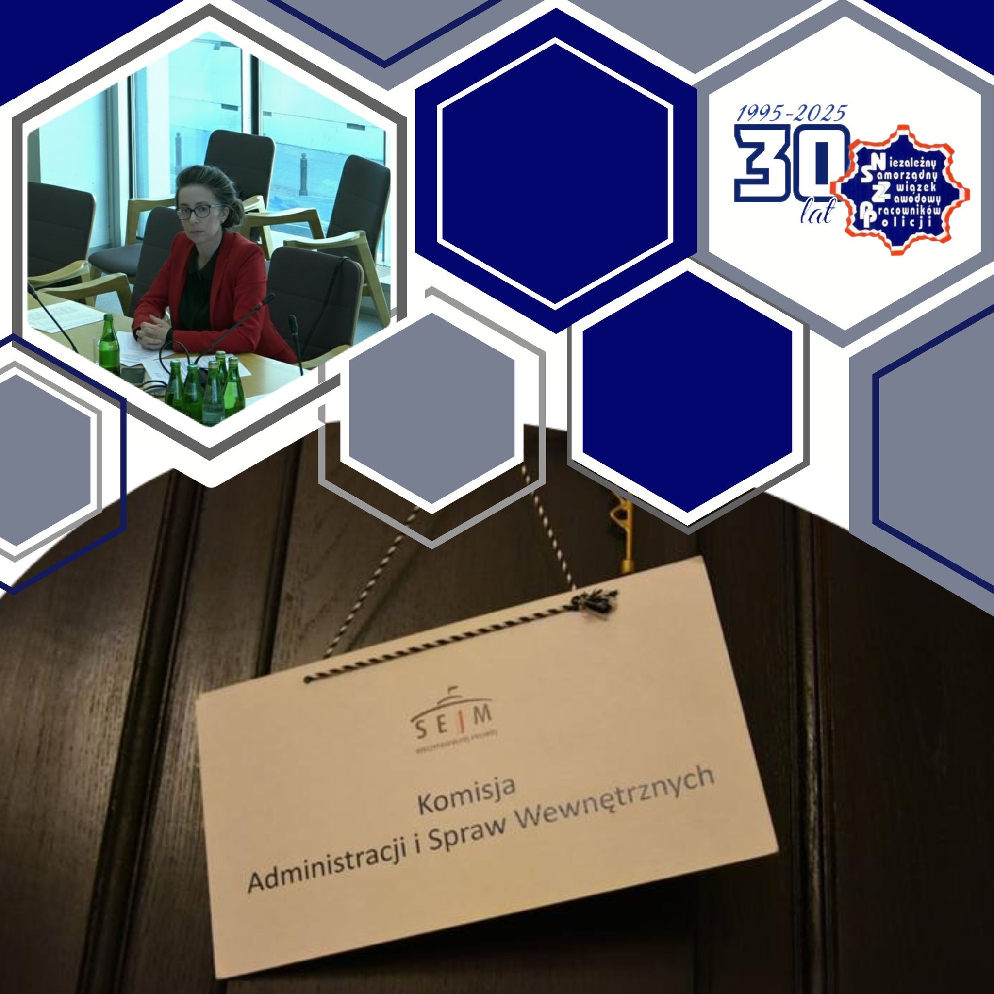 W dniu 19 listopada 2025 r. zgodnie z wcześniejszymi ustaleniami z Panią Przewodniczącą Marią Małgorzatą Janyską odbyło się posiedzenie Komisji Administracji i Spraw Wewnętrznych, której przedmiotem obrad była: „Informacja Ministra Spraw Wewnętrznych i Administracji na temat propozycji poprawy warunków pracy pracowników cywilnych zatrudnionych w służbach mundurowych podległych ministrowi właściwemu do spraw wewnętrznych.”